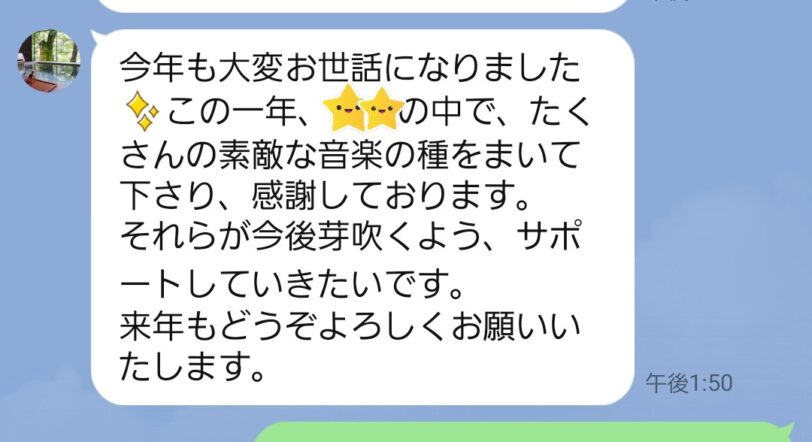 来年も、お子さん達の成長を楽しみながら、お子さん達と一緒に音楽やピアノを楽しんでいただければと思っています。